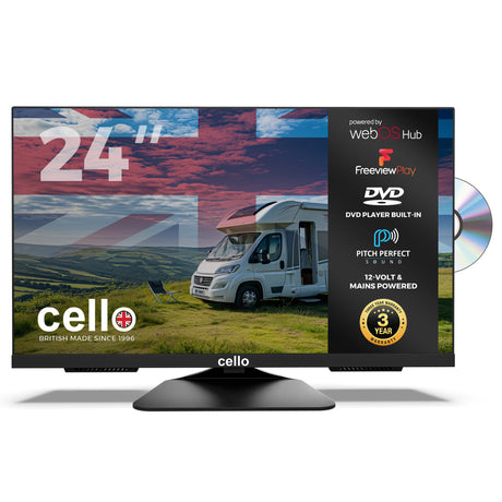 Cello Electronics, founded in 2001, is a renowned manufacturer of high-quality Bluetooth TVs that are British-made; specifically for the UK market. We provide TVs of all different sizes for homes and offices, 12v TVs with bluetooth functionality for campervans and motorhomes, and even 4k ultra HD bluetooth TVs. No matter what you need from a TV with bluetooth, Cello Electronics’ comprehensive range will have a TV that’s perfectly suited to your requirements. Shop online now and purchase before 2.30pm to qualify for free next day delivery within the UK.